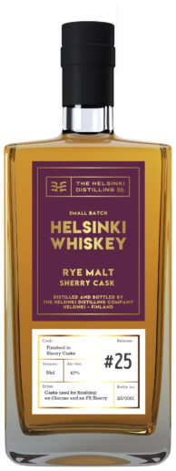 Helsinki Rye Malt Sherry Cask Whiskey från Helsinki Distilling Company är en smakrik rågwhisky som kombinerar nordiskt hantverk med klassisk fatlagring. Den görs på finsk mältad råg och korn, vilket ger en tydlig kryddighet balanserad av en mjuk och rund kropp.
